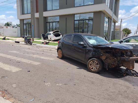 Um acidente de trânsito envolvendo dois veículos foi registrado na manhã desta segunda-feira (20), por volta das 11h15, no cruzamento da Avenida das Emas com a Rua das Mangueiras, no bairro Jardim Orquídeas, em Nova Mutum.