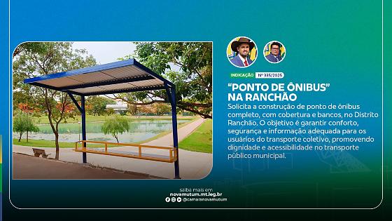 Em uma decisão unânime tomada durante a 37ª Sessão Ordinária desta quarta-feira (17), os vereadores de Nova Mutum aprovaram uma proposta que busca melhorar a infraestrutura de transporte no Distrito Ranchão. A Indicação nº 335/2025, de autoria do vereador Cristiano Bicô (REPUBLICANOS) e coautoria do vereador Baguncinha (PP), solicita a construção de um ponto de ônibus completo com cobertura e bancos nas proximidades do posto de combustível da localidade.