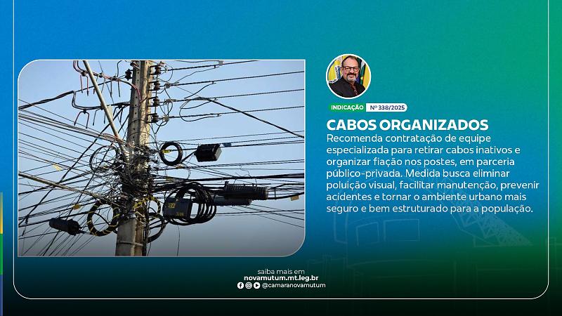 A iniciativa demonstra como o Legislativo municipal está atento aos detalhes que afetam a qualidade de vida na cidade. A organização dos cabos traria benefícios como a melhoria visual das vias públicas, redução de riscos de acidentes e potencial ganho de eficiência na manutenção da infraestrutura de telecomunicações. A sugestão agora segue para análise do Executivo, que estudará a viabilidade de estabelecer esta parceria inovadora, equilibrando os interesses públicos e privados para embelezar e modernizar a paisagem urbana de Nova Mutum.