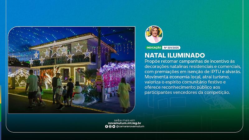 Com o objetivo de revitalizar o espírito natalino e impulsionar a economia local, os vereadores de Nova Mutum aprovaram por unanimidade uma proposta que visa embelezar a cidade durante as festas de fim de ano. A Indicação nº 331/2025, de autoria da vereadora Carmem Casagrande (UNIÃO BRASIL), solicita ao Executivo a retomada de campanhas de incentivo à decoração natalina em residências e comércios, instituindo um concurso com premiação para os participantes.