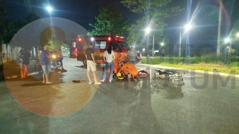 Um homem e uma mulher ficaram feridos na noite desta sexta-feira (31) após um acidente envolvendo duas motocicletas, no cruzamento da Rua das Paineiras com a Rua dos Flamboyants, em Nova Mutum/MT.