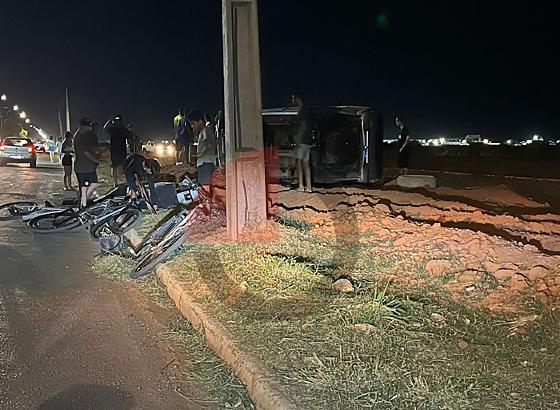 Um jovem capotou uma caminhonete na noite deste sábado (25) na Avenida São Paulo, em Nova Mutum, após tentar desviar de um motociclista que entrou repentinamente na via. O motorista perdeu o controle e foi arremessado para fora do veículo.
