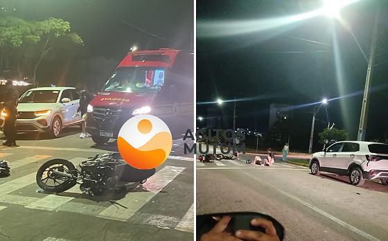 Uma jovem sem CNH ficou levemente ferida após colidir sua Honda CG 160 na traseira de um VW T-Cross na Avenida Mutum, em Nova Mutum, na noite de domingo (30).
