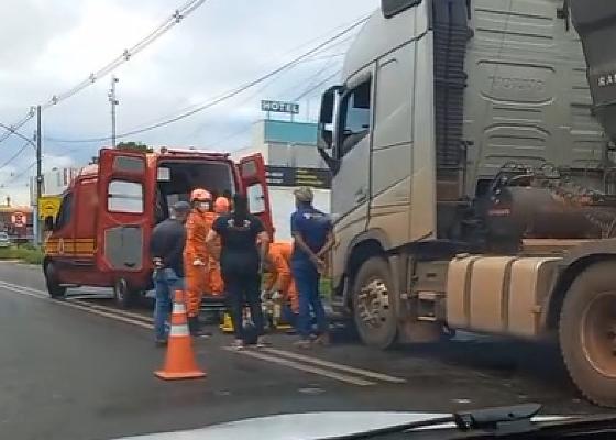 Segundo testemunhas, a motociclista, uma mulher, tentou cruzar a via para a direita e acabou sendo atingida pela carreta, que seguia sentido sul. O motorista ainda tentou frear, mas não conseguiu evitar o impacto.