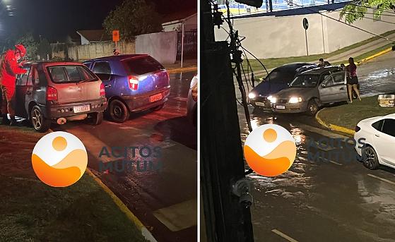 Um acidente de trânsito envolvendo dois veículos foi registrado na noite desta segunda-feira (20), na Rua das Seringueiras, bairro Jardim Imperial, em Nova Mutum/MT.