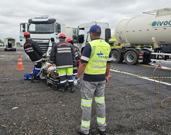 O treinamento tem como objetivo aprimorar os procedimentos de resposta em situações que envolvem vazamento, incêndio ou explosão de cargas perigosas, garantindo a segurança dos usuários da rodovia e das comunidades próximas. Participam da simulação equipes da Nova Rota, ANTT, Politec, Ciopaer e Sema-MT, Corpo de Bombeiros, Polícia Rodoviária Federal, Defesa Civil, entre outros órgãos parceiros.