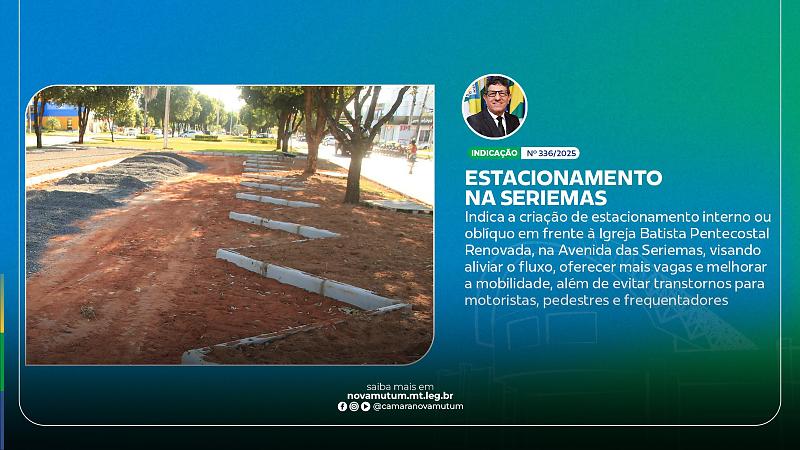 Além de beneficiar usuários específicos, a medida contribuiria para a melhoria geral da mobilidade urbana, organizando o espaço público e evitando que veículos estacionem em locais inadequados. A proposta prevê a utilização dos canteiros centrais da avenida, preservando assim o passeio público para a circulação de pedestres e mantendo a estética viária. Com esta sugestão, a Câmara demonstra seu compromisso em buscar soluções para os desafios urbanos do município. A proposta segue agora para análise do Executivo, que avaliará a viabilidade técnica e legal da implantação do estacionamento, considerando seu potencial de melhorar a qualidade de vida na Avenida das Seriemas.