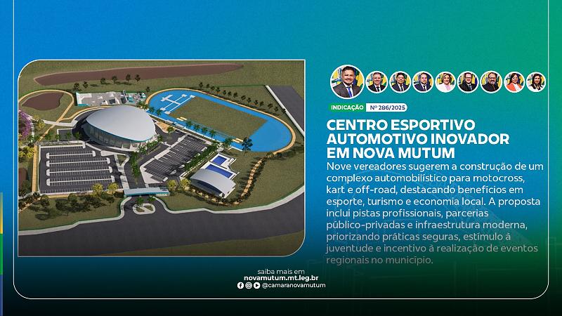Em reunião parlamentar realizada nesta quarta-feira (15), os vereadores de Nova Mutum apresentaram a Indicação nº 286/2025, que sugere a criação de um complexo automobilístico no município. A proposta, de autoria do vereador Maciel Sousa (REPUBLICANOS) e subscrita por Lucas Badan Faria (UNIÃO BRASIL), Altair Albuquerque (PP), Anderson Mantovan (UNIÃO BRASIL), Carmem Casagrande (UNIÃO BRASIL), Rafael Brignoni (PL), Ricardo Schneider (PL), Lurdes Costa Marques (REPUBLICANOS) e Beatriz Correa (UNIÃO BRASIL)., tem como objetivo principal oferecer um local adequado e seguro para a prática de diversas modalidades, como motocross, kart, kart cross, off-road e som automotivo.