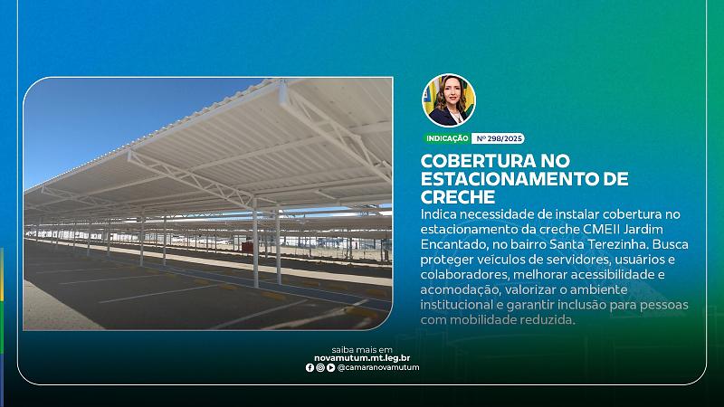 A vereadora destaca que a medida traria benefícios diretos à rotina da creche, tornando o ambiente mais acolhedor e funcional, ao mesmo tempo em que valoriza a estrutura do espaço público. O modelo de cobertura sugerido segue o padrão já adotado em outras instalações municipais, como o estacionamento do Paço da Prefeitura, servindo de referência para novas adequações em prédios públicos.