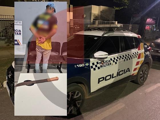 Irritado, o homem se exaltou e passou a discutir com a esposa. Em seguida, segundo relato da vítima, o suspeito pegou um facão e desferiu um golpe de prancha contra sua perna, além de chamá-la de “vagabunda”. A agressão não causou lesões aparentes.