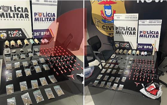 Na residência, foram encontradas mais porções de maconha, pinos contendo cocaína e uma balança de precisão. O suspeito afirmou ser proprietário de um salão de cabeleireiro e relatou que no local haveria mais entorpecentes.