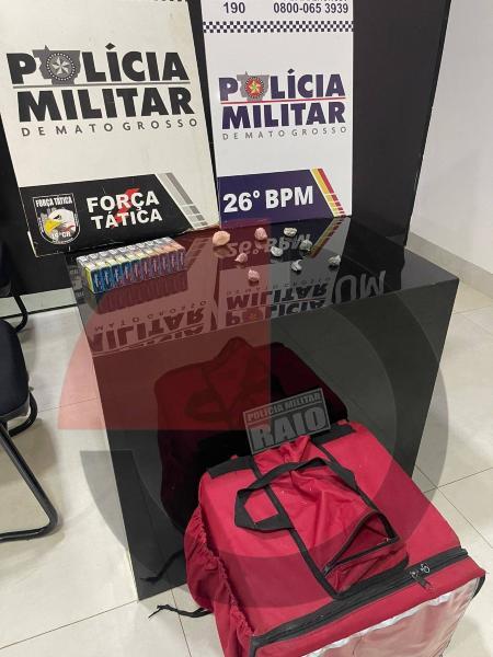 Durante a abordagem, os militares encontraram uma porção de substância análoga à maconha no bolso do suspeito. Em seguida, ao revistar uma mochila de entregas que ele carregava, foram localizadas outras oito porções da mesma substância, totalizando nove porções prontas para a venda.Além da droga, a PM também apreendeu dez maços de cigarros lacrados, que, segundo as denúncias, poderiam estar sendo utilizados em trocas ilícitas.