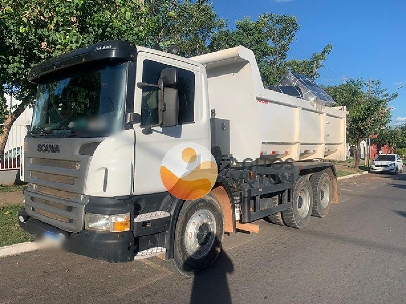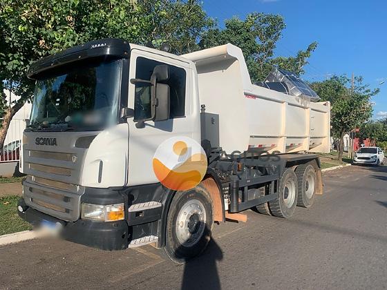 Durante a checagem dos documentos e a vistoria veicular, foi constatado que se tratava de um caminhão Scania, de cor branca, apresentando placas divergentes: a dianteira e a traseira. A irregularidade configura adulteração de sinal identificador de veículo automotor, conforme a legislação vigente.