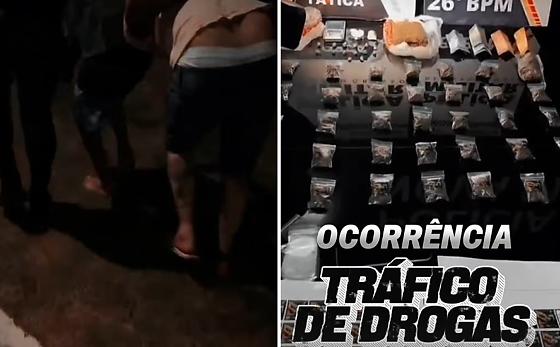 Os suspeitos, com passagens por tráfico, roubo e homicídio, foram flagrados com 33 invólucros de maconha e 16 porções de pasta base de cocaína. Um deles, Éderson, utilizava tornozeleira eletrônica.