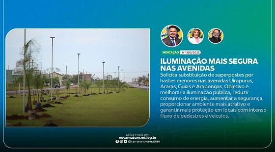 Com o compromisso de promover melhorias na infraestrutura urbana e garantir mais segurança à população, o vereador Maciel Sousa (Republicanos), juntamente com a vereadora Carmem Casagrande (UNIÃO BRASIL) e o vereador Ricardo Schneider (PL), apresentou a Indicação nº 302/2025, que propõe ao Poder Executivo Municipal a substituição dos superpostes por hastes menores, readequando o sistema de iluminação das Avenidas Uirapurus, Araras, Águias e Arapongas, em Nova Mutum.